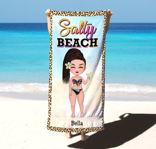 Girls - Salty Beach Beach Summer Girl - Personalized Beach Towel