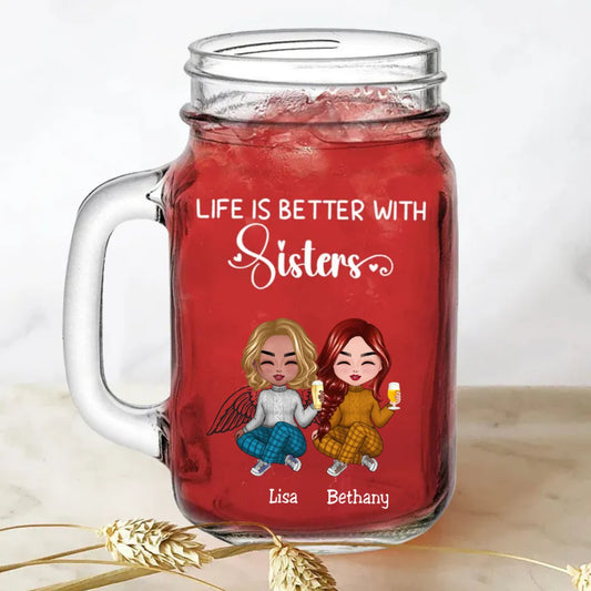 Sisters - Life Is Better With Sisters - Personalize Drinking Jar (White)