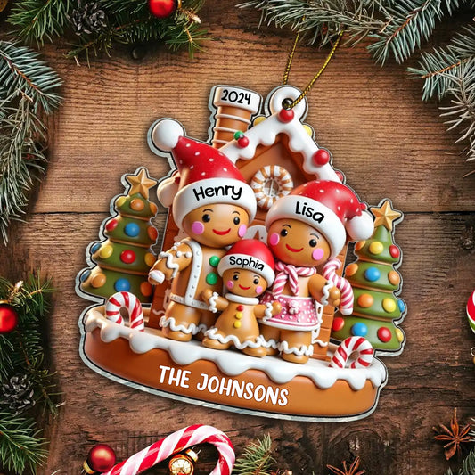 Gingerbread Family With Gingerbread House 3D Effect Personalized Acrylic Ornament