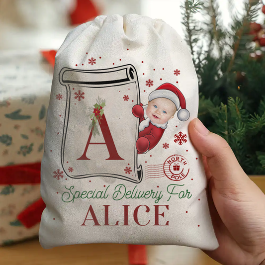 Custom Photo Special Delivery For Baby Santa - Personalized Favor Bag