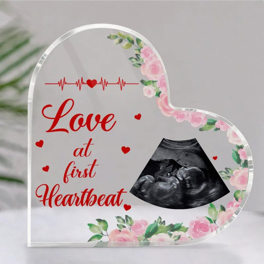 Mom - Custom Photo Love At First Heartbeat Baby - Personalized Heart Acrylic Plaque