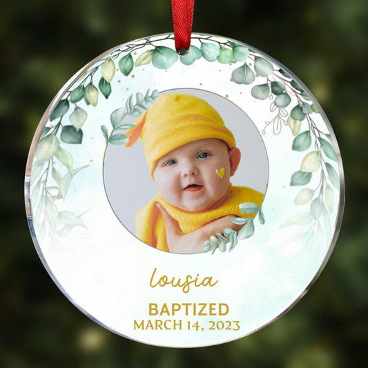 Custom Photo Baptized Baby - Personalized Circle Ceramic Ornament