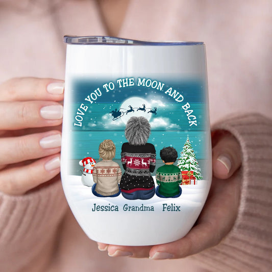 Family - I Love You To The Moon And Back - Personalized Wine Tumbler