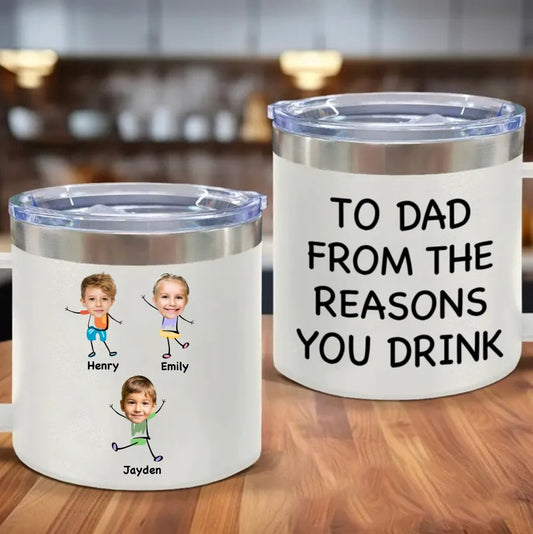 Family - Custom Photo To Dad From The Reasons You Drink - Personalized 14oz Stainless Steel Tumbler With Handle