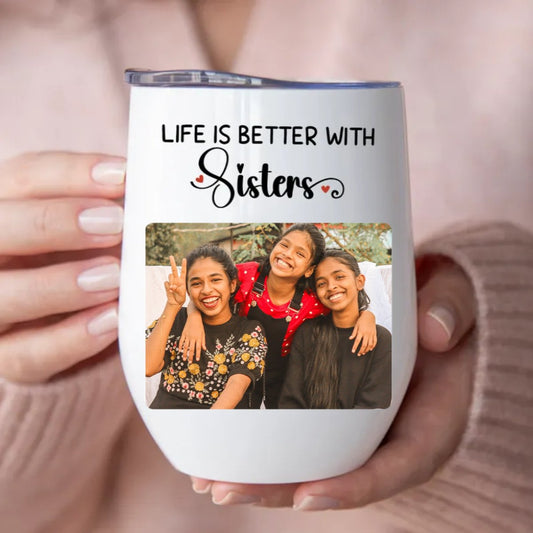 Sisters - Life Is Better With Sisters - Personalized Wine Tumbler (LH)
