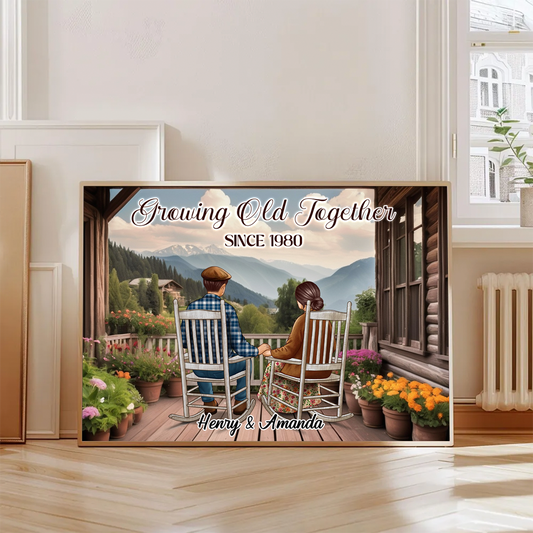Couple Sitting On The Porch, Growing Old Together Personalized Poster, Heartfelt Valentine's Day Gift For Couple, For Him, For Her, Husband, Wife