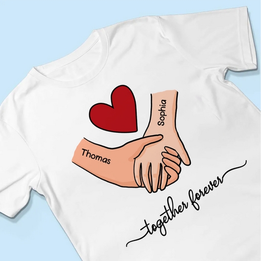 Personalized Couple Holding Hands Red Heart Shirt, Valentine's Day Gift, Anniversary Gift for Him for Her