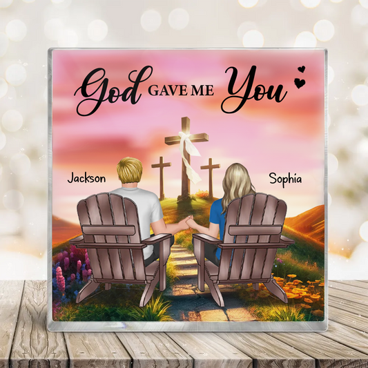 Cross God Knew My Heart Needed You Old Couple Sitting Together Personalized Acrylic Block Plaque, Anniversary Valentine's Day Gift For Him, Her, Husband, Wife