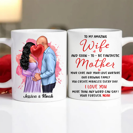 Personalized Valentine Pregnant Wife Mug, Kissing Couple, Expecting From Husband Gift, Mom To Be Vday Gift, Romantic Pregnancy Gift