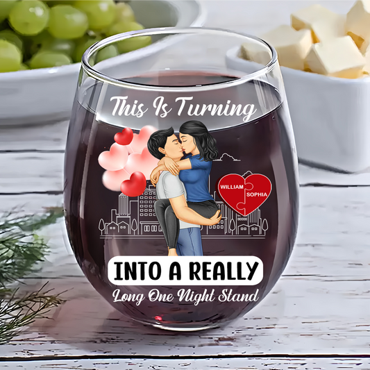 Kissing Couple Into A Really Long One Night Stand - Personalized Stemless Wine Glass