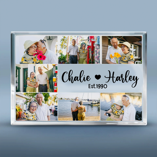 Eternal Beach Landscape Couple Sitting Personalized Heart Acrylic Block Plaque, Heartfelt Gift For Couple, For Him, For Her, Boyfriend, Girlfriend, Husband, Wife