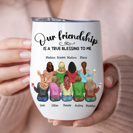 Friends - Our Friendship Is A True Blessing To Me - Personalized Wine Tumbler (MC)
