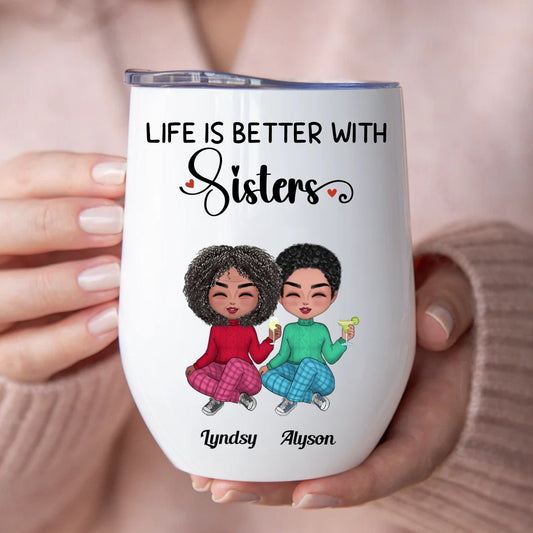 Sisters - Life Is Better With Sisters - Personalized Wine Tumbler