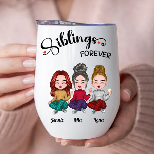 Sisters - Siblings Forever - Personalized Wine Tumbler