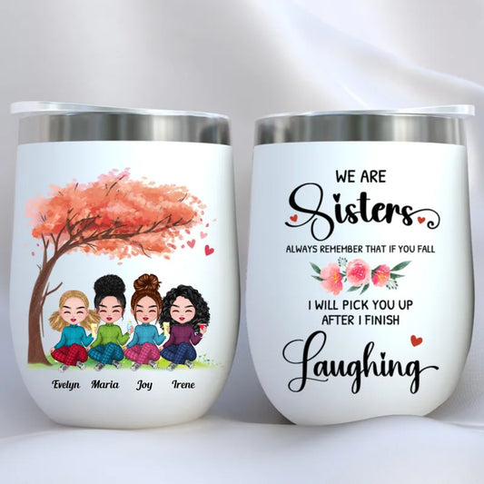 Sisters - You And I Are Sisters Always Remember That If You Fall I Will Pick You Up After I Finish Laughing - Personalized Wine Tumbler