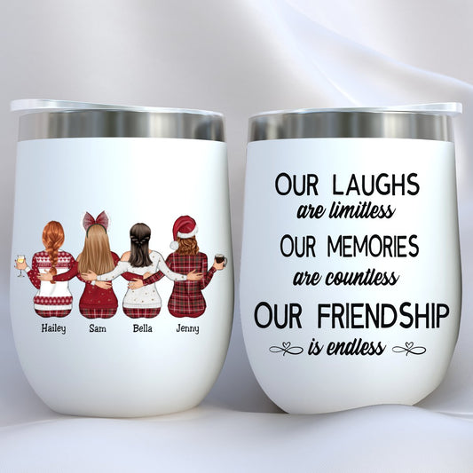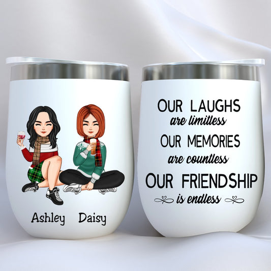 Besties - Our Laughs Are Limitless Our Memories Are Countless Our Friendship Is Endless - Personalized Wine Tumbler (QH)