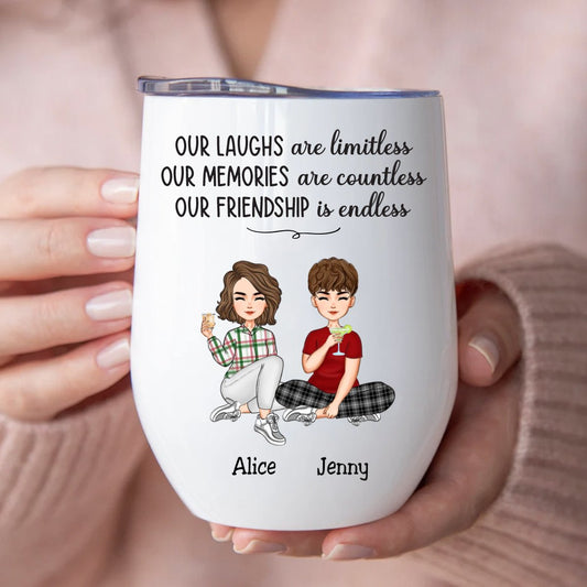 Besties - Our Laughs Are Limitless Our Memories Are Countless Our Friendship Is Endless - Personalized Wine Tumbler