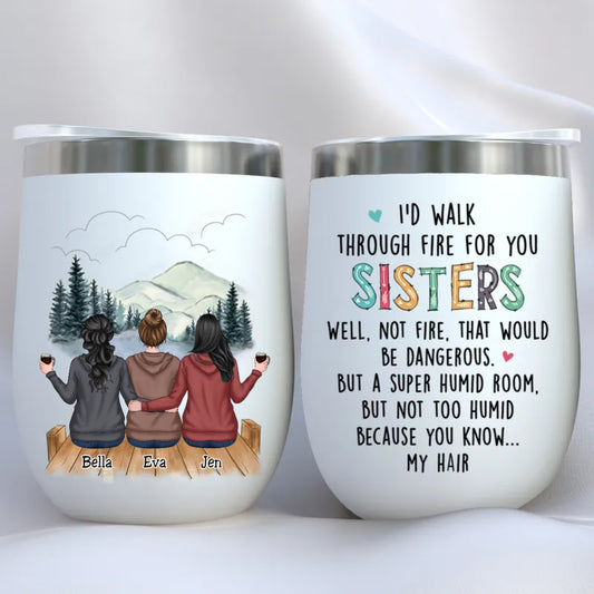Family - I'd Walk Through Fire For You Sisters - Personalized Wine Tumbler (HP)