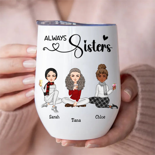 Sisters - Always Sisters - Personalized Wine Tumbler