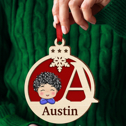 Christmas Kids Monogram - Personalized Wooden Ornament