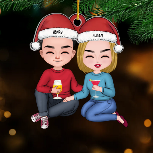 Cheers To A Merry Christmas - Couple Personalized Custom Ornament - Wood, Acrylic Custom Shaped - Christmas Gift For Husband Wife, Anniversary