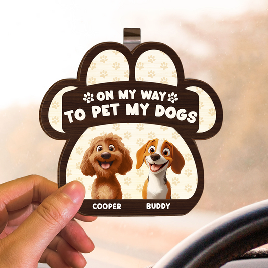 On My Way To Pet My Dogs - Personalized Wooden Car Visor Clip