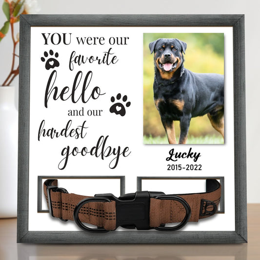 Dog Lovers - You Were Our Favorite Hello And Our Hardest Goodbye - Personalized Wooden Pet Collar Holder