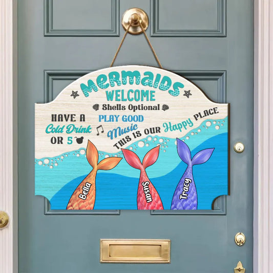 Family - Mermaids welcome shells optional - Personalized Shaped Wood Sign