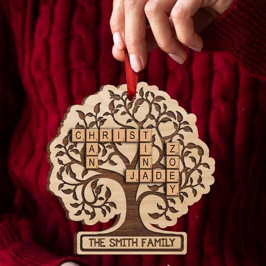 Family Tree Of Life Crossword Wood Ornament, Personalized Family Wood Ornament