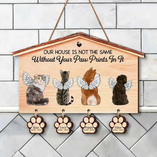 Dog Cat Memorial Our House Is Not The Same Without Your Paw Prints - Personalized Custom Shaped Wood Sign With Wooden Tags