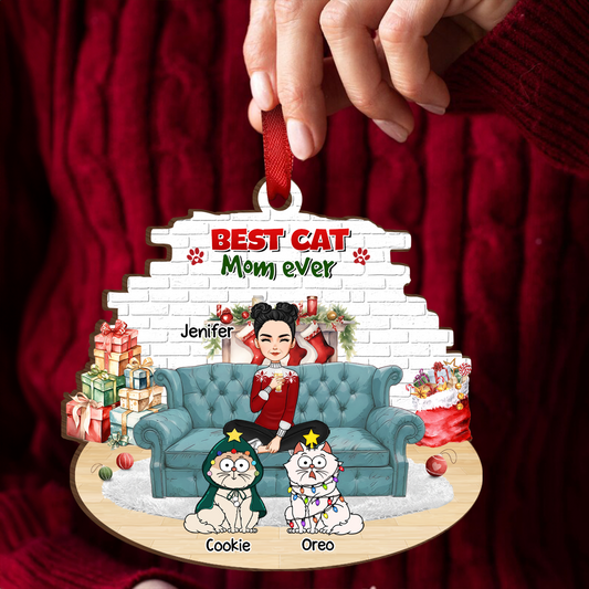 Best Cat Mom Ever Christmas - Personalized Custom Shaped Wooden Ornament
