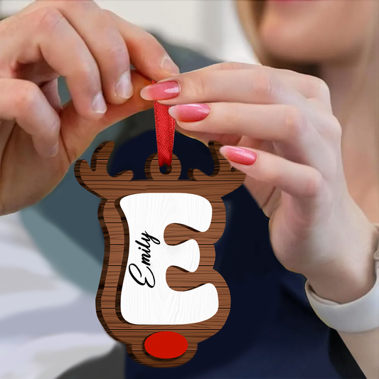 Reindeer Alphabet Christmas - Personalized Wooden Ornament