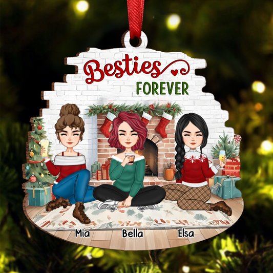 Christmas Besties Forever - Personalized Custom Shaped Wooden Ornament