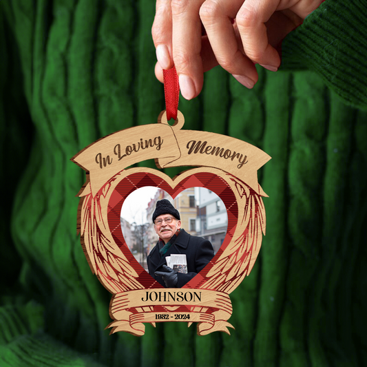 Custom Photo In Loving Memory Memorial - Personalized Custom Shaped Wooden Ornament