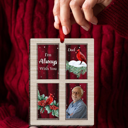 Always With You Lost Loved One Outside Window Cardinal Photo Inserted Memorial Keepsake Personalized Wooden Ornament