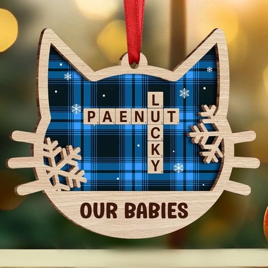 Dogs Cats Pet Names Crossword Puzzle Art Personalized Wooden Ornament, Christmas Gift for Pet Lovers