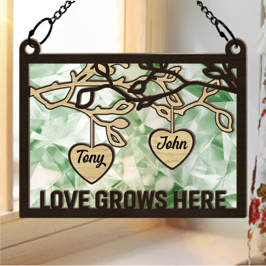 Family - Tree Wood Love Grows Here - Personalized Window Hanging Suncatcher Ornament