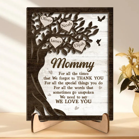 Family - Heart Tree Mom - Personalized 2-Layered Wooden Plaque With Stand