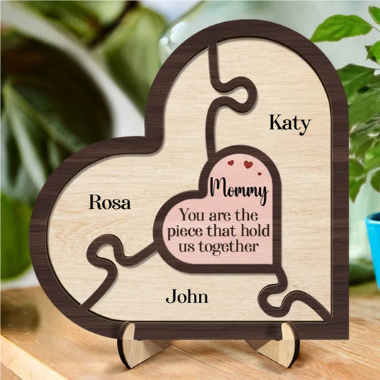 Family - You Are The Piece That Holds Us Together - Personalized 2-Layered Wooden Plaque With Stand