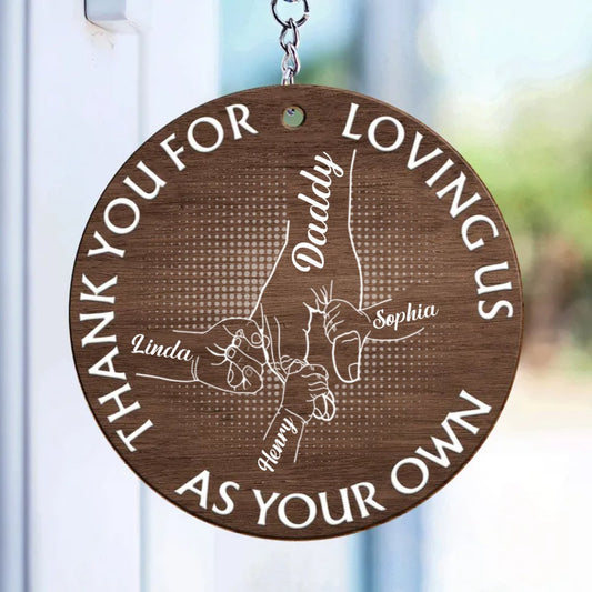 Father - Thank You For Loving Us As Your Own - Personalized Wooden Keychain (TL)