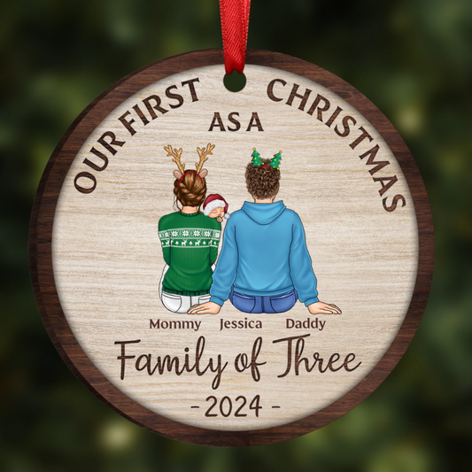 First Christmas As A Family Of Three New Parents - Personalized 2-Layered Wooden Ornament