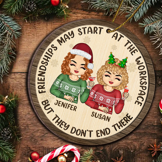 Friendships May Start At The Workplace Christmas Chibi - Personalized Wooden Ornament