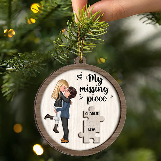 My Missing Piece Couple Hugging Kissing Personalized Wooden Ornament