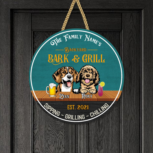 Dog Personalized Wood Sign for Backyard Bark & Grill - BLUE