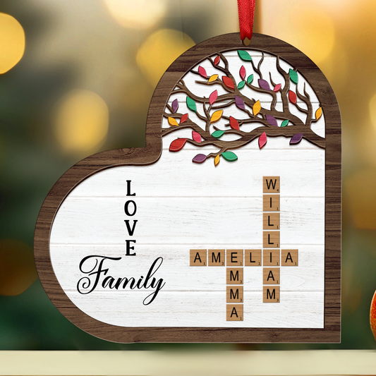 Love Family Crossword Scrabble - Personalized Wooden Ornament