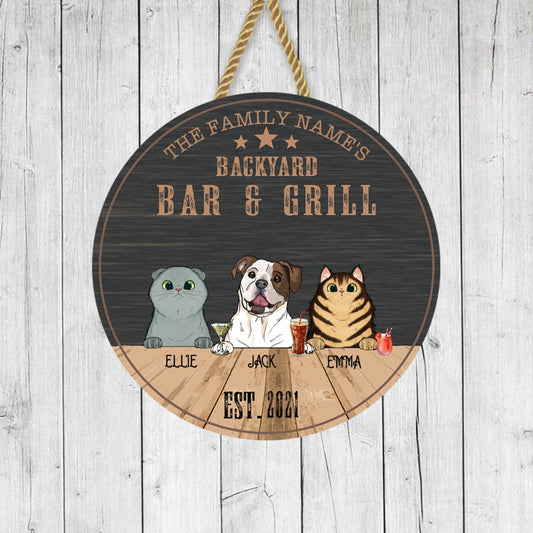 Cat/Dog Personalized Wood Sign for Backyard Bar & Grill