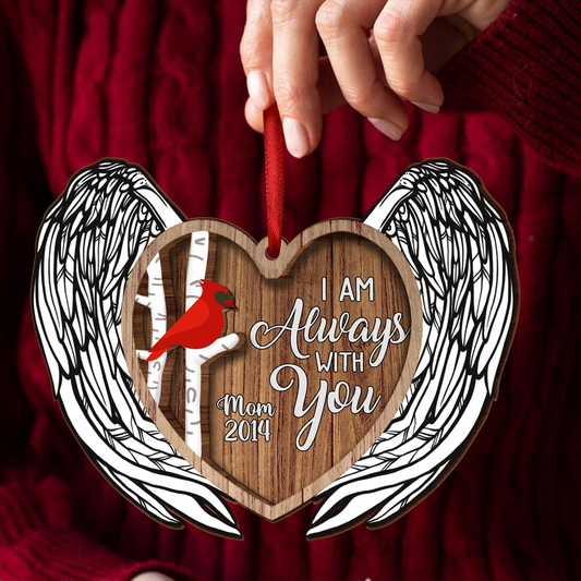 Always With You Cardinal Angel Wings Memorial Keepsake Personalized Wooden Ornament