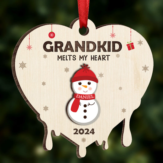 Snowman Grandkids Melt My Heart - Personalized Wooden Ornament