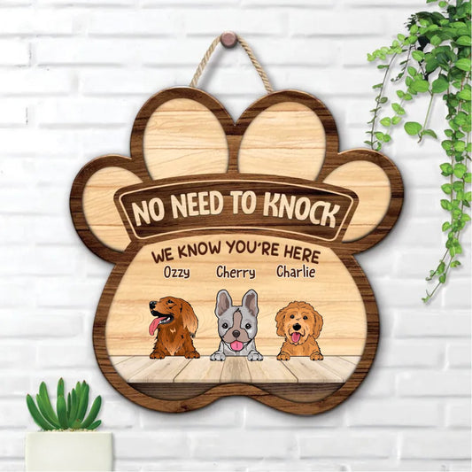 Dog Lovers - No Need To Knock, We Know You're Here - Personalized Wood Sign