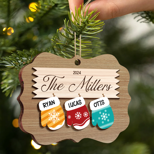 Mittens With Grandkids Names - Christmas Gift For Grandparent - Personalized Wooden Ornament